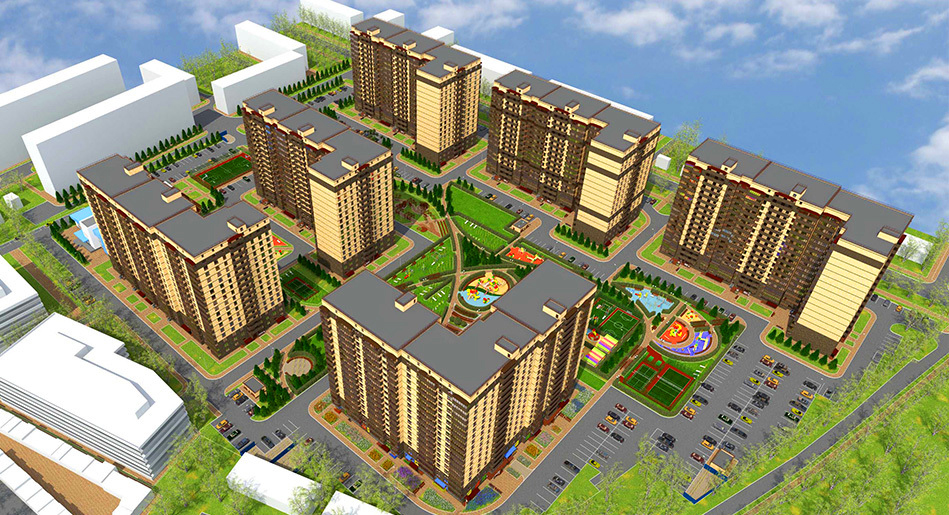 Просторная территория среди деревьев и цветов, обустроенные зоны отдыха, детские и спортивные площадки, широкие проезды. Собственная управляющая компания.